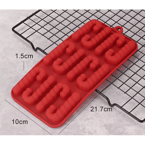 Molde de silicona con 12 cavidades con forma de bastoncitos navideños.